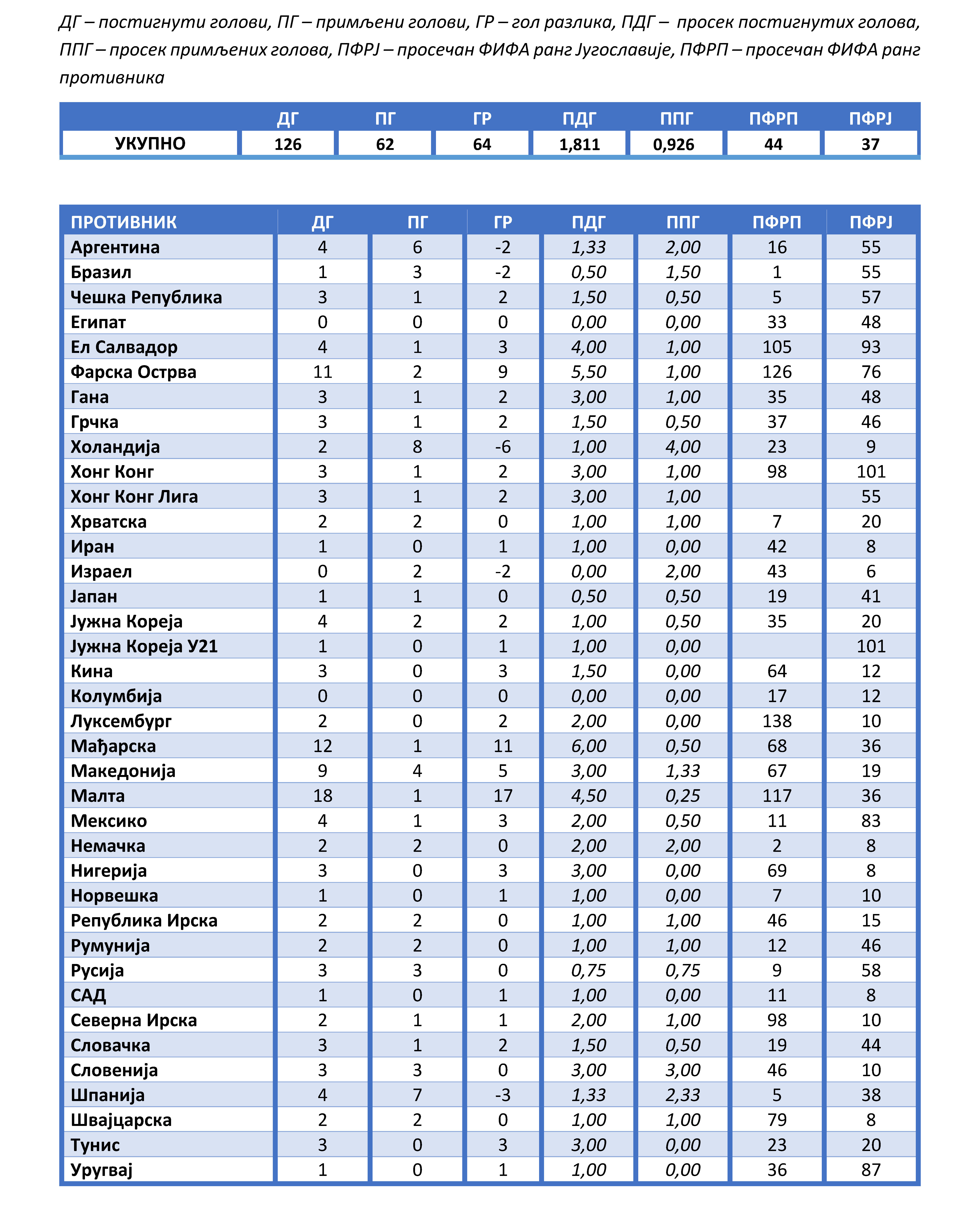 - При дну 298. стране поткрала се техничка грешка у билансу репрезентације против свих противника. Подаци су тачни, али су поновљени, па је и редослед колона померен.